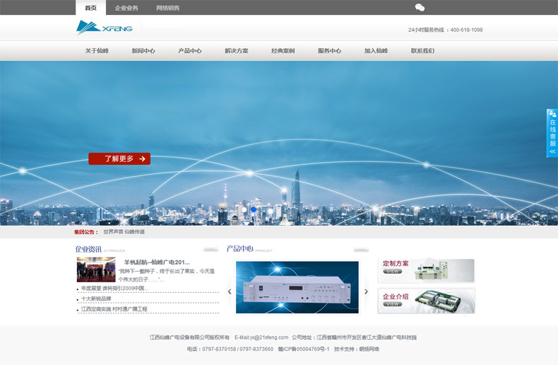 江西仙峰广电设备有限公司是中华人民共和国工业和信息化部无线广播电视设备定点生产企业。公司始建于1988年,随着公司事业的发展以及京九铁路的开通,于1996年在江西省第二大城市—赣州市,建设了新厂。经多年的努力,企业得到长足的发展并迈上了一个新的台阶,现已入驻国家级开发区--香港工业园投资建设。预计投资4000万元,建设用地22亩,厂房建设面积2万余平方米。投产后年工业产值将达2000万元。