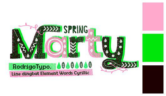 这个案例中,Rodrigo 使用了Marty字体,色彩上也坚持了他的三色原则,只使用了粉色、黑色和绿色。