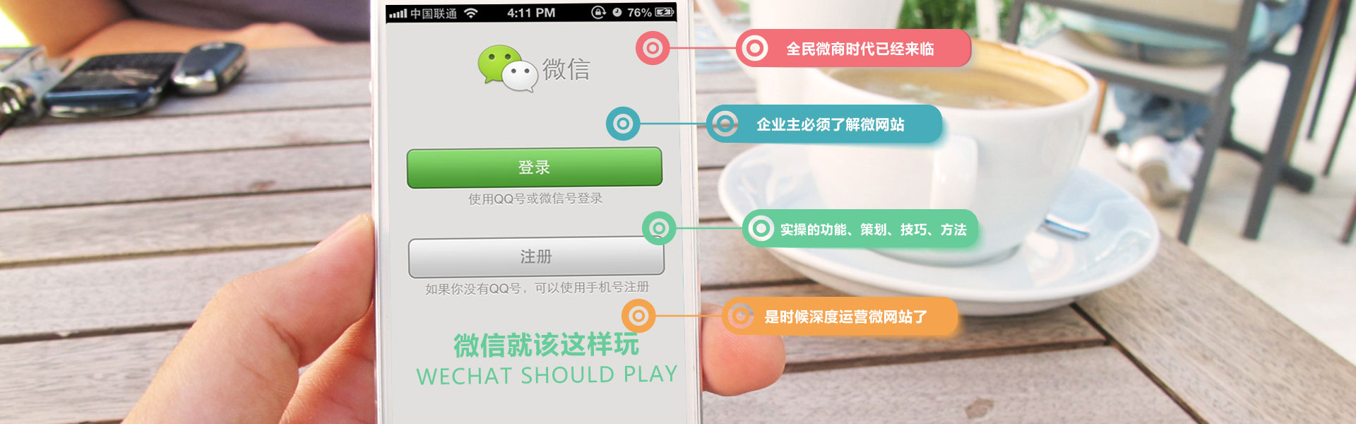 接入微信开放平台,用户通过移动设备 了解您业务的窗口, 同时也是您塑造网 络品牌的重要入口